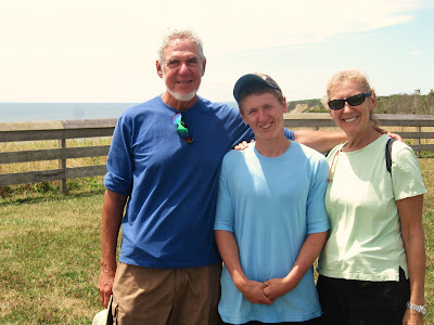 Well, the weather gods made it up to us today for yesterday's lousy weather. Postcard picture perfect without even a trace of the fog for which Rhode Island is notorious. From the top of SE light we could see Montauk, Watch Hill, CT, the entire RI coast and the tops of the Newport bridge towers.Ernie and Camille's daughter and son in law came over from Point Judith to visit Blast on the ferry today, instead of yesterday, to avoid the bad weather. After a swim on the east beach they went back on the ferry late this afternoon with the grandkids.