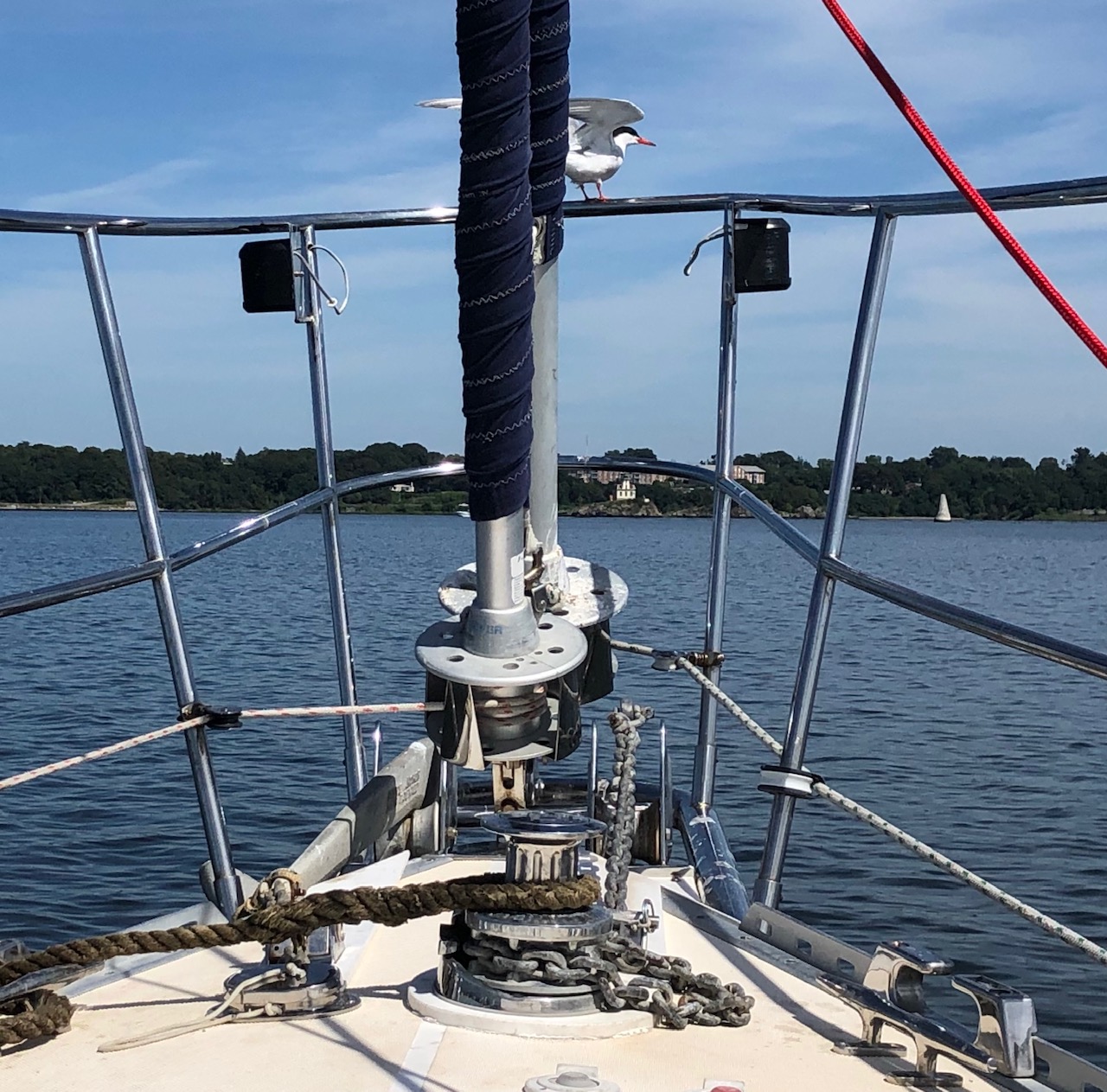 We tarried the next morning with hair and nails appointments for Lene, groceries and a breakfast at AlMac diner. Breakfast was the final straw in Block Island being crossed off our itinerary this year. Well at this point, 2/3 of the way through the planned cruise, my mate usually gets itchy for home and 2019 is no exception. Not that we have any appointments for which we have to get home early. But Almac served fried Portuguese bread, that sweet delicious bread, and told us that we could get more during our walk back to the dink, at Cinderella Bakery. We did. And part of the reason for sailing to Block Island's Great Salt Pond is to score such bread from Aldo, who scurries about the harbor in his boat yelling "Andiamo!!!" and selling to those who becon him over. Block has many other attractions, but we've got our Portuguese bread fix for 2019.